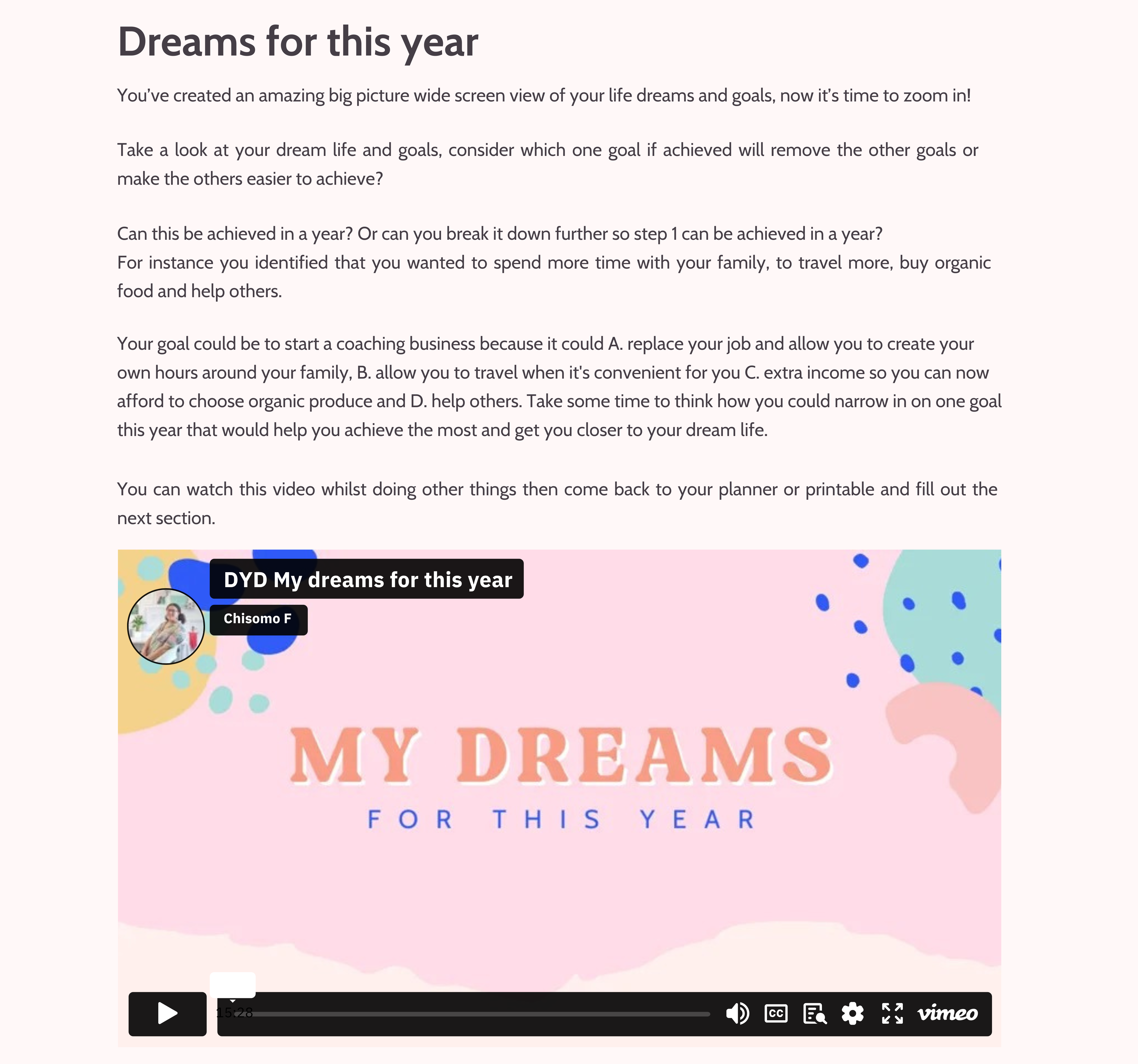 My dreams for the year